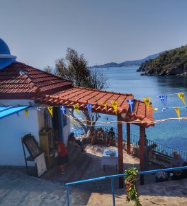 Loutra village is a village situated amongst beautiful olive trees on the western slopes of Mount Amali. There, you will find the church of St.George, a site of archeological interest, built in 1815, with an ornate three-colored mosaic floor and a tall bell tower. Skala Loutron, the seaside village of Loutra, was created in 1930 by the refugees who came from the shores of Asia Minor. There, you will find the “Refugee of Minor Asia Museum”, the only museum of this kind on Lesvos Island, housing a small historic, folkloric museum with 300 exhibits, heirlooms that refugees brought from their country, historic documents, books, precious items, holy icons, items from their daily life, apparels and other exhibits.
