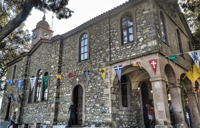 | The imposing structure of Virgin Mary built in 1896, a gothic-styled dome church, dedicated to the “Panagiouda” According to the local dialect |